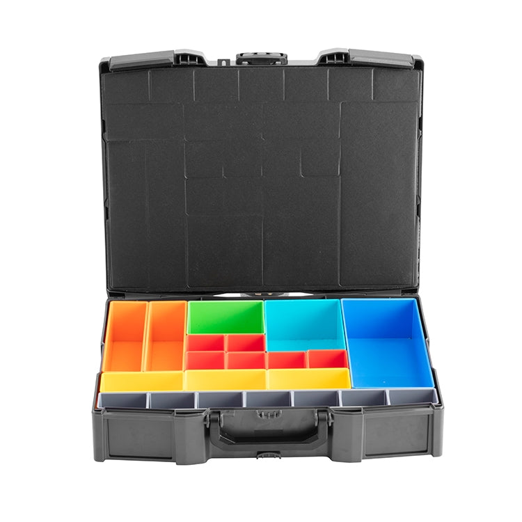 La valigia portautensili FG 1434 può essere impilata sui modelli FG 1426 FG 1427 ed FG 1425 per comporre il kit portatile e componibile FG 1438/S4. Guarda il video!